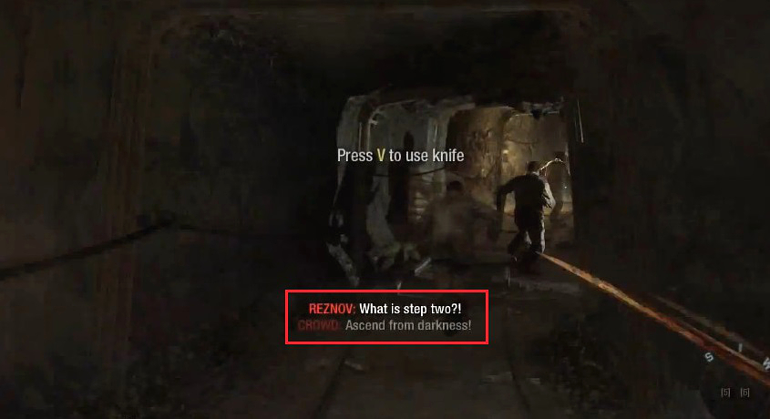 Reznov then raises the keys in victory while their fellow prisoners recite step one and two.
