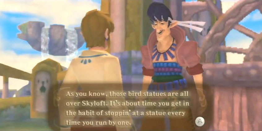 As you know, those bird statues are all over Skyloft. It’s about time you get in the habit of stoppin’ at a statue every time you run by one.
