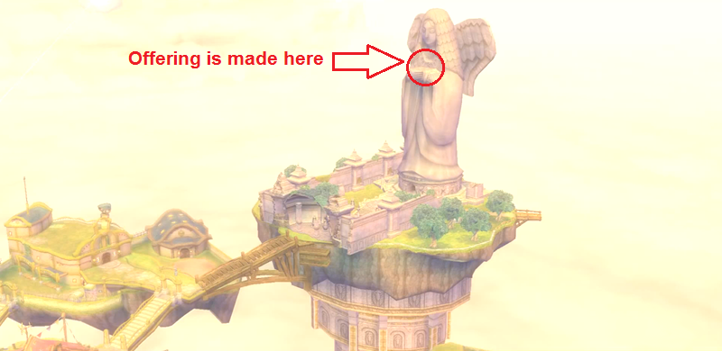 The first step of the Wing Ceremony is for the player to offer the Bird Statuette to the goddess.