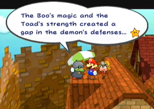 “The Boo’s magic and the Toad’s strength created a gap in the demon’s defenses…”