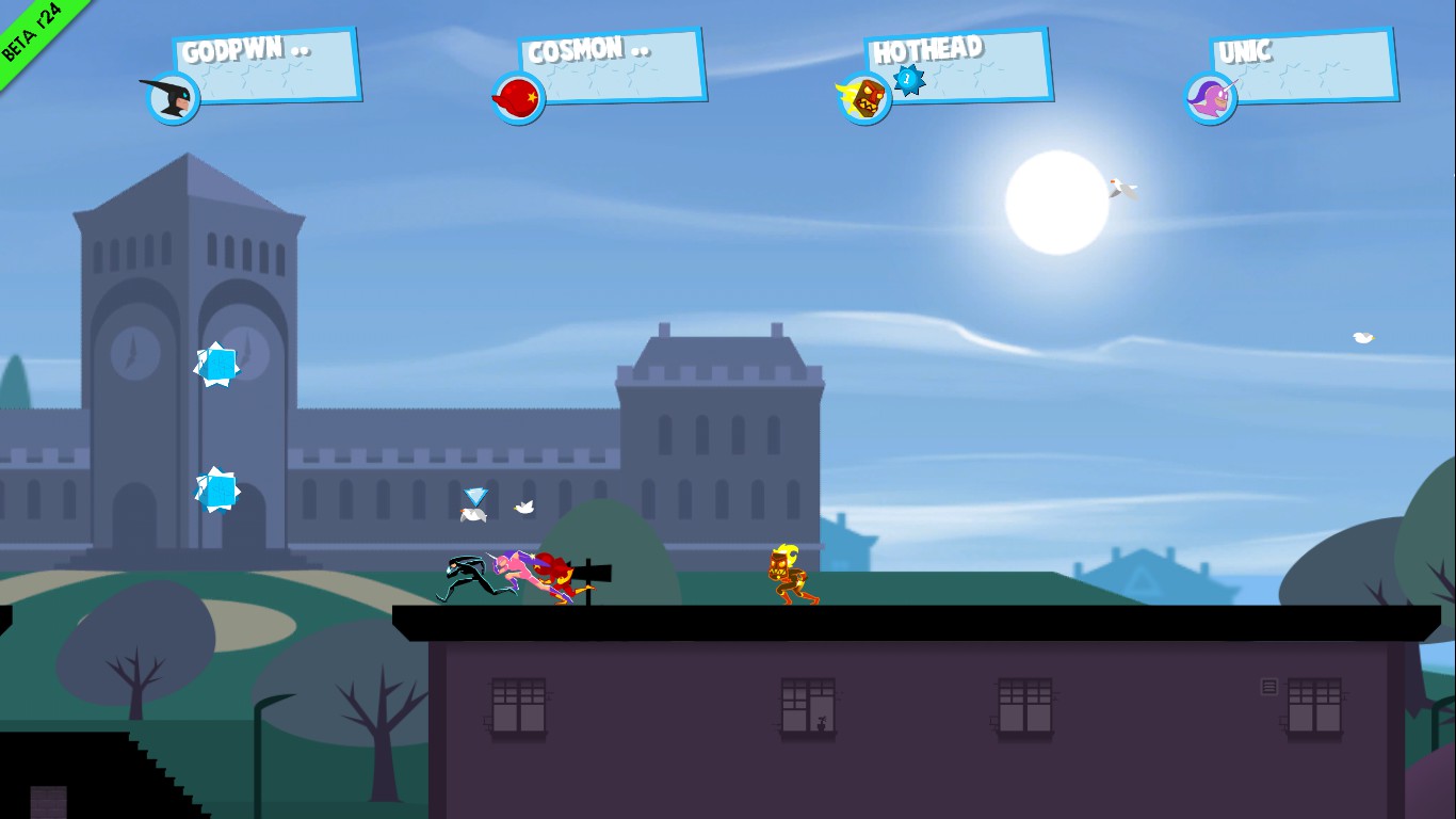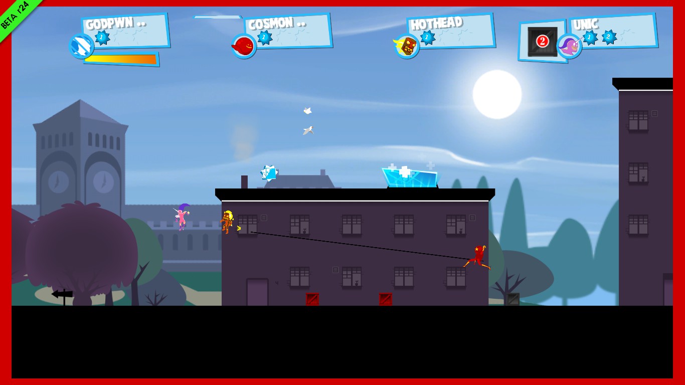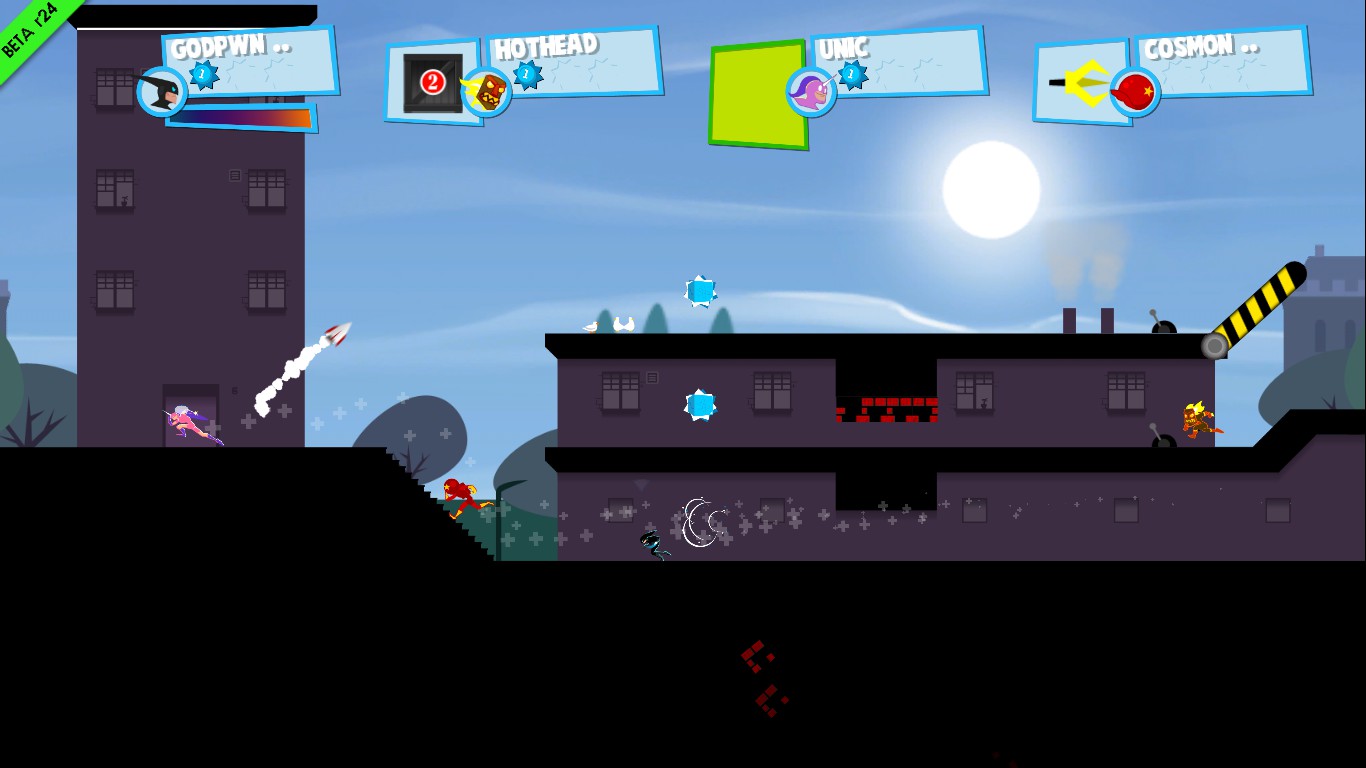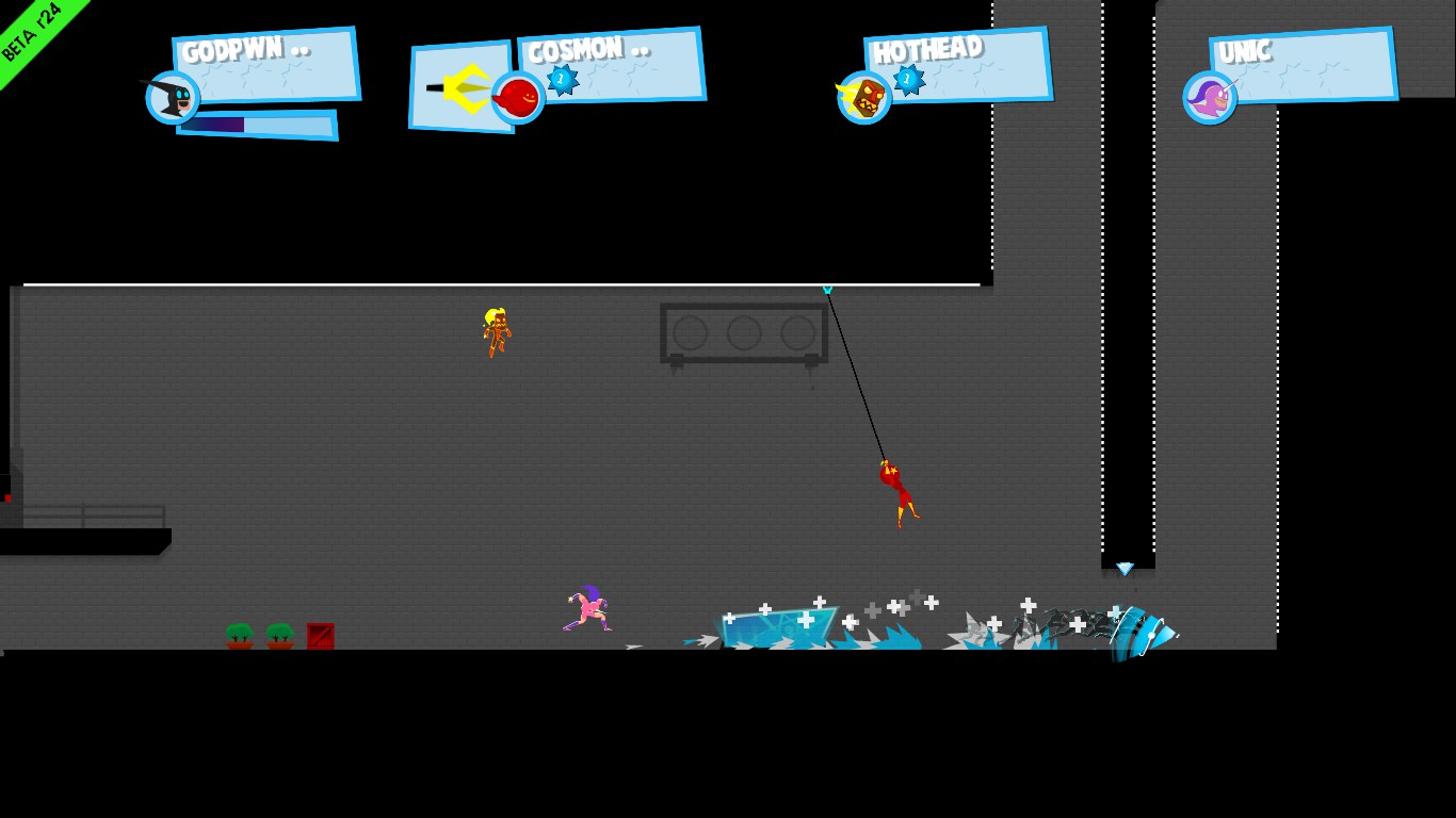 The objective of SpeedRunners is to either be the last superhero standing or to be so fast as to finally outdistance your opponents and run off the edge of the screen. This is made more difficult by both the environment (spikes and momentum-ruining boxes) and the other players (missiles, grappling hooks, Invinci-Drill, etc.).