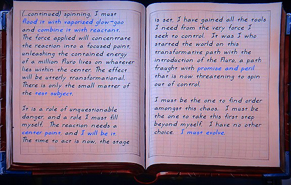 …bridging the gap between Fluros and living beings. It will be my greatest invention, and the solution to all the ails of the modern world.