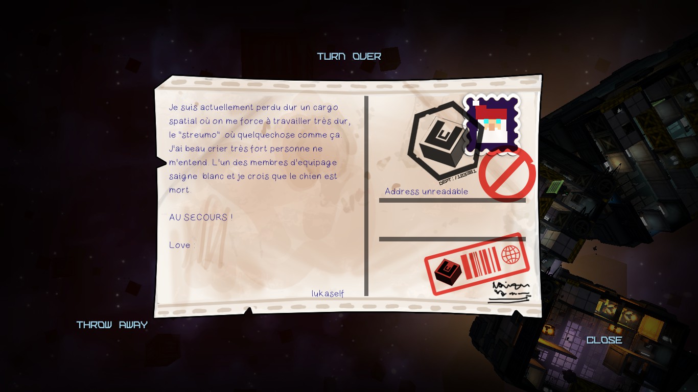 Players find postcards in-game, write on them, and leave them for other players to find.