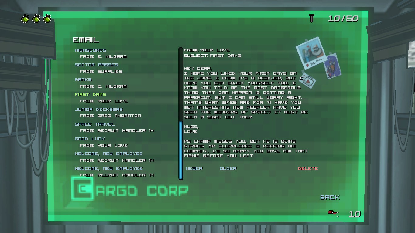 You tearfully read the emails from your wife-“Your Love,” as she raved about your brand new office job and “promotion” at Cargo Corp.
