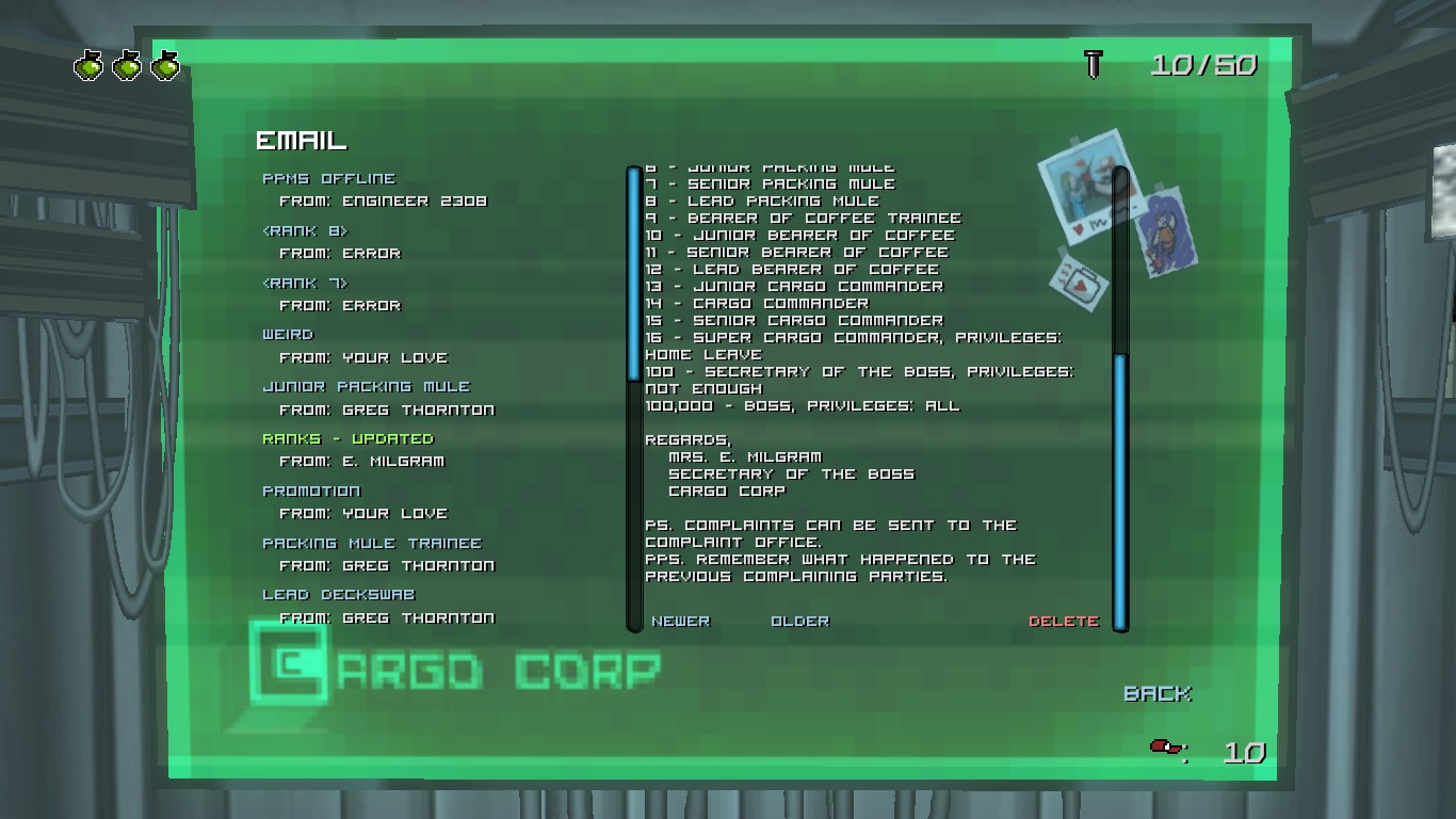 Since Cargo Commander is an online game that allows you to type in words to create levels, sometimes other players’ inappropriate entries may be seen: