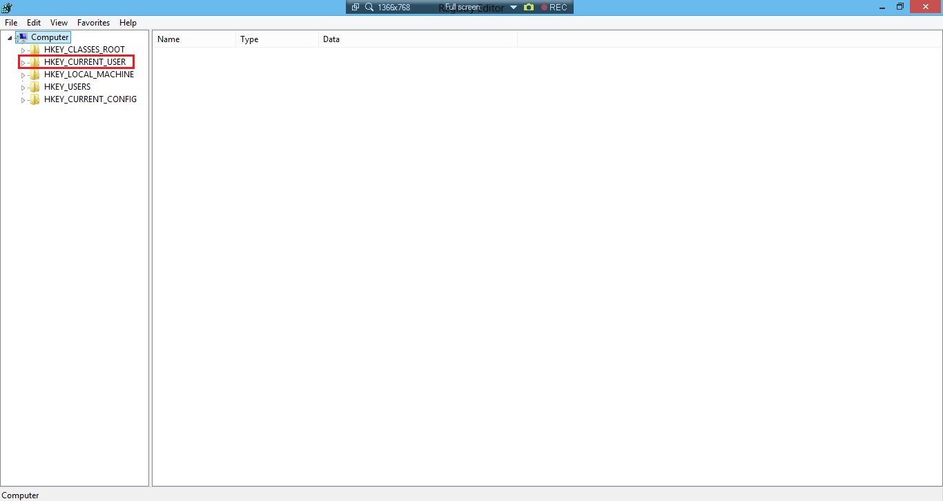Click on the arrow next to “HKEY_CURRENT_USER.”