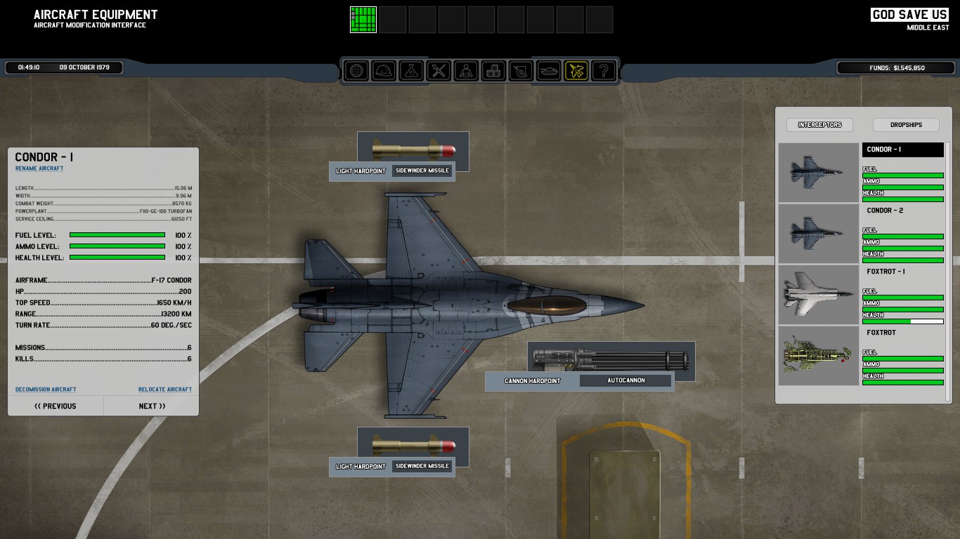 When a UFO is first detected, you can select both the aircraft launched in response to this threat and the weaponry used: