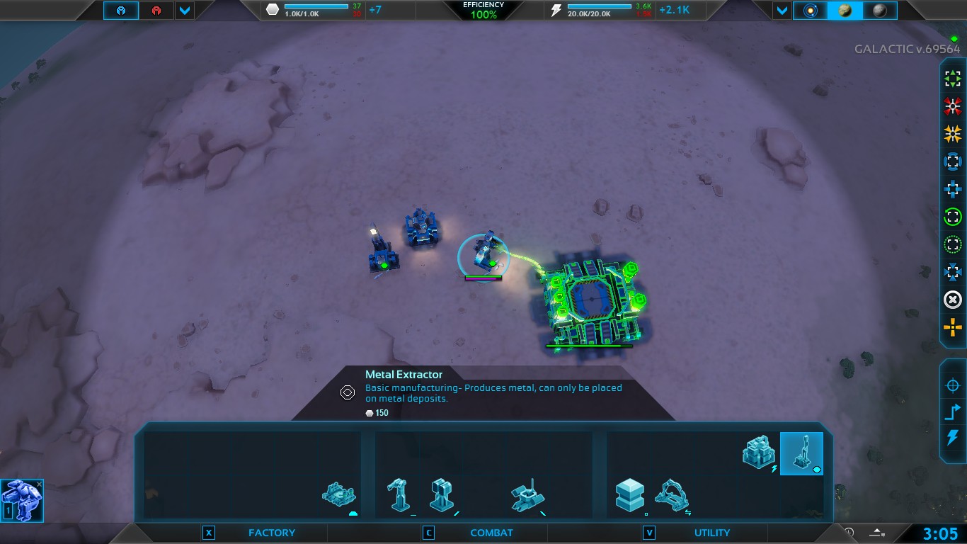 The first step toward doing this is to build an economy. You only have two resources to harvest and manage–Energy and Metal–so this task is relatively simple. Construct a few metal extractors, some energy plants, etc.