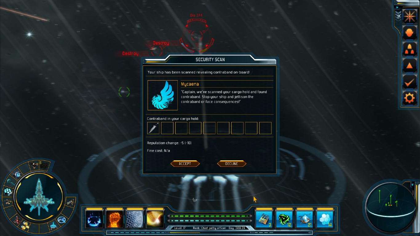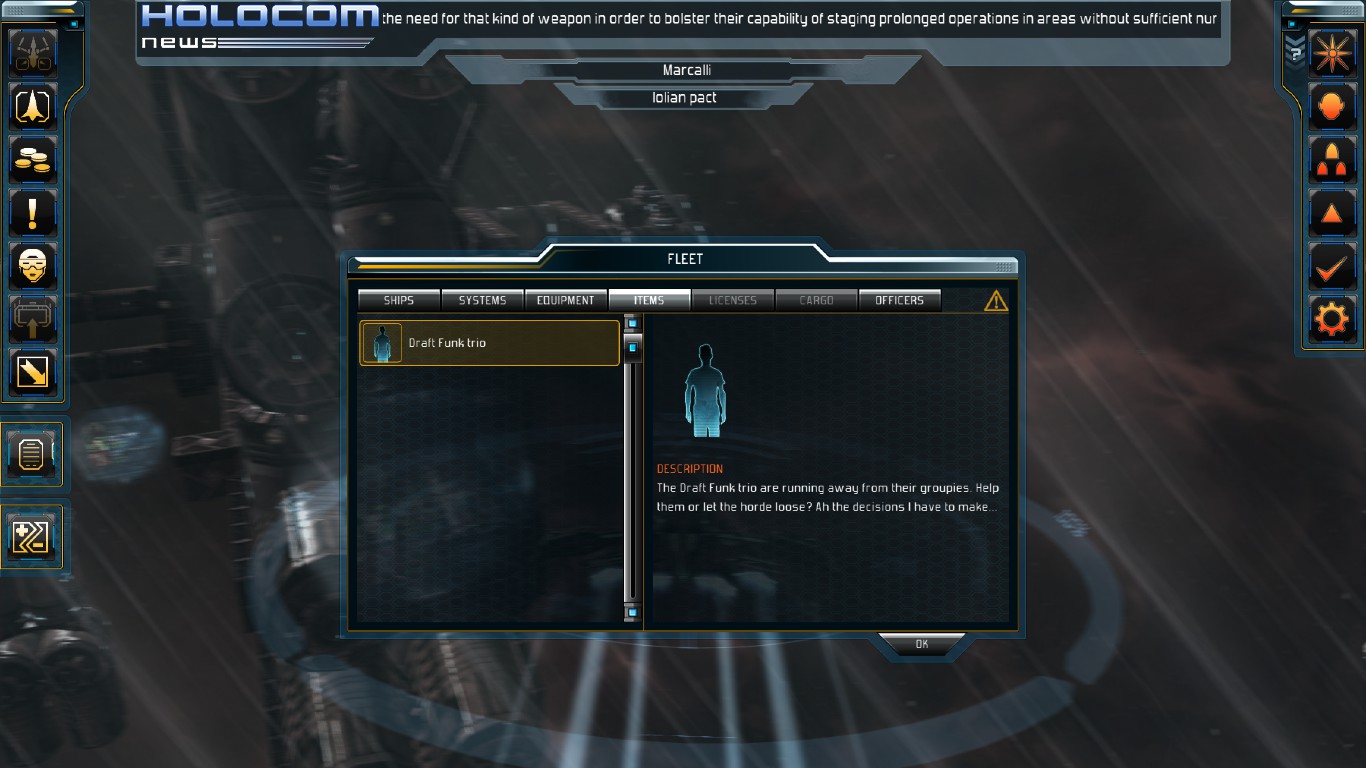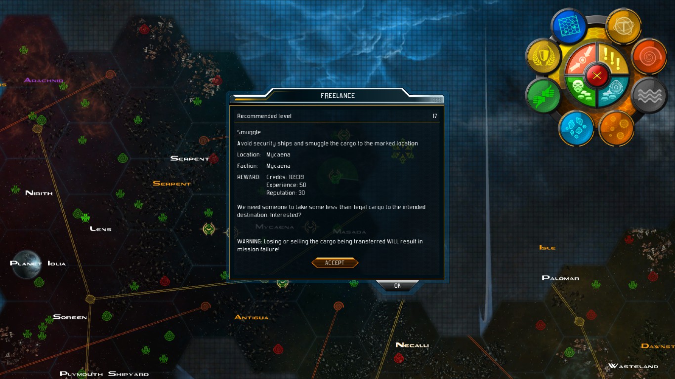You start out as a “Lawful” captain allied with factions like the Iolian Pact, Trinity Free States, etc.