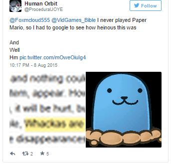 “I never played Paper Mario, so I had to google to see how heinous this was